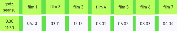 W ramach cyklu propozycje filmowe są dostosowane do wieku w taki sposób, by przeżyte podczas projekcji chwile stały się przyczynkiem realizacji treści zawartych w nowej podstawie programowej.
