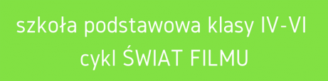 W ramach cyklu „Świat filmu” uczniowie z klas 4–6 szkoły podstawowej poznają podstawowe wiadomości z zakresu wiedzy o filmie, a także mają możliwość omó- wienia kolejnych etapów tworzenia filmu, od pomysłu po skończenie dzieła. Podczas kilku przemyślanie skonstruowanych spotkań w kinie uczniowie poznają twórców, którzy mają wpływ na realizację filmu, od scenarzysty, producenta, reżysera, operatora, monta- żysty, kostiumologa, charakteryzatora, kompozytora po aktorów. Kolejne spotkania mają na celu uświadomienie, że obraz filmowy tworzy zespół ludzi. Film to nie dzieło jednego autora. Każdy z elementów filmu ma bezpośredni wpływ na jego efekt.